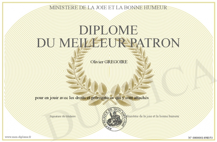 Envoyez par email votre DIPLOME DU MEILLEUR PATRON personalisé