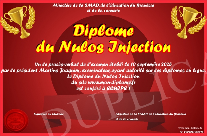 Envoyez par email votre Diplôme du Nulos Injection personalisé