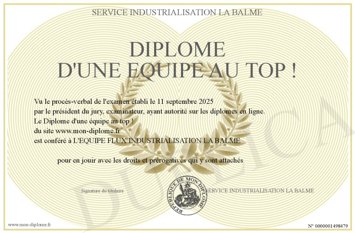 Envoyez par email votre Diplôme d'une équipe au top ! personalisé