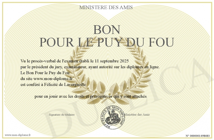 Envoyez par email votre Bon Pour le Puy du Fou personalisé