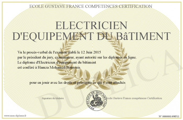 Envoyez par email votre Electricien d'équipement du bâtiment personalisé