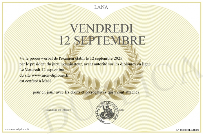 Envoyez par email votre Vendredi 12 septembre personalisé