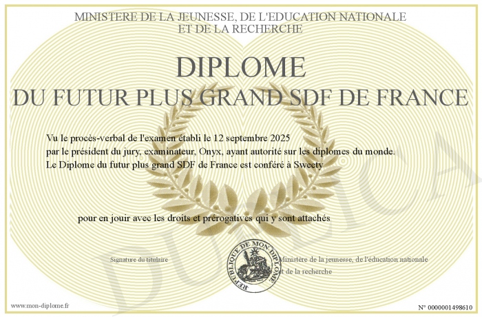 Envoyez par email votre Diplôme du futur plus grand SDF de France personalisé