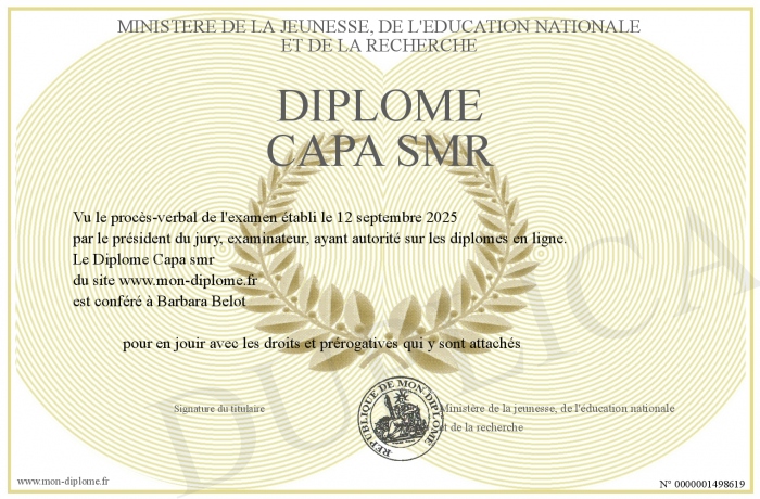Envoyez par email votre Diplome Capa smr personalisé