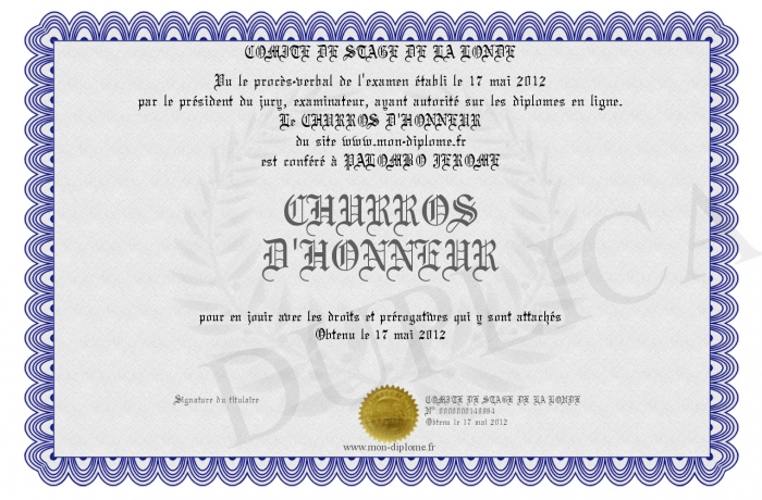 Envoyez par email votre CHURROS D'HONNEUR personalisé