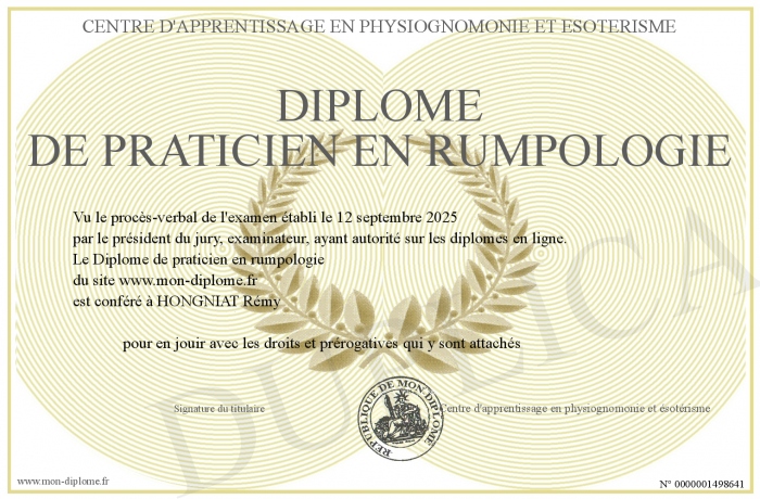 Envoyez par email votre Diplôme de praticien en rumpologie personalisé