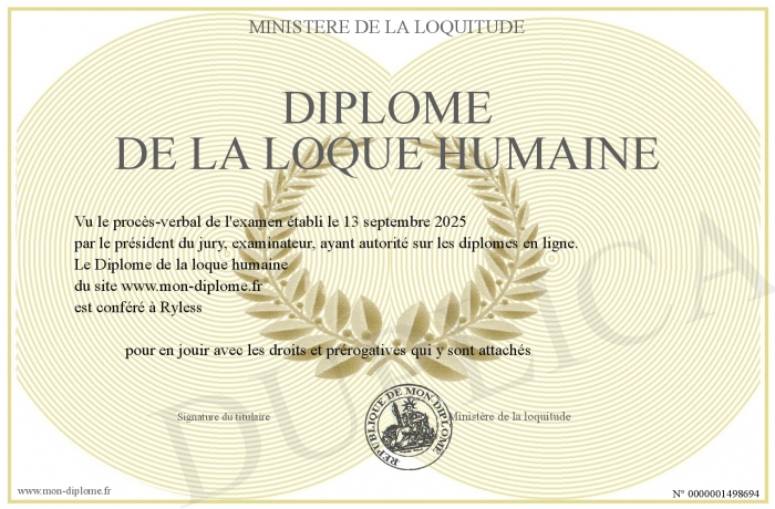 Envoyez par email votre Diplôme de la loque humaine personalisé