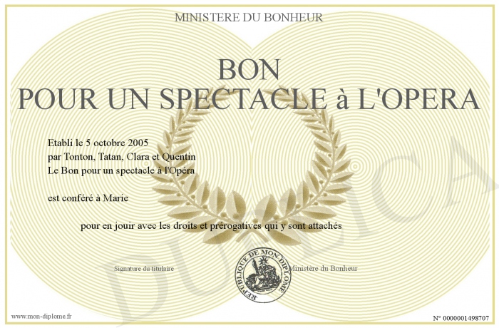 Envoyez par email votre Bon pour un spectacle à l'Opéra personalisé