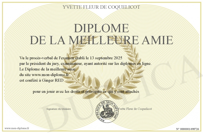 Envoyez par email votre Diplôme de la meilleure amie personalisé