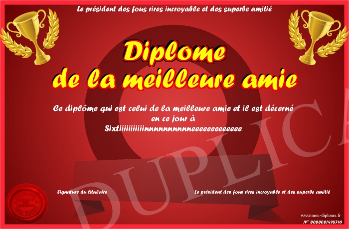 Envoyez par email votre Diplôme de la meilleure amie personalisé