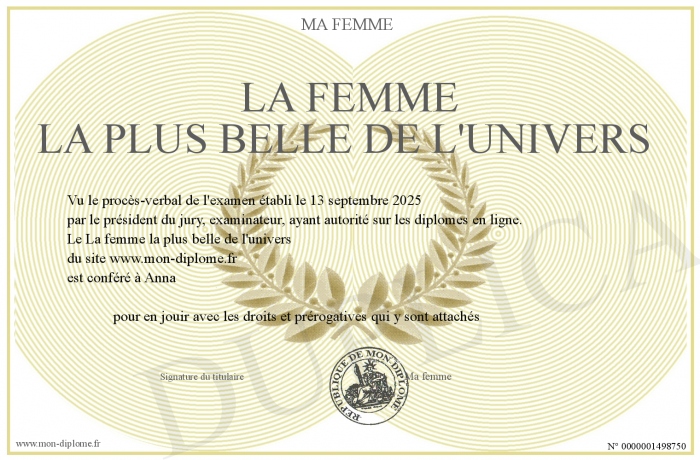 Envoyez par email votre La femme la plus belle de l'univers personalisé