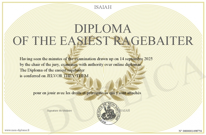 Envoyez par email votre Diploma of the easiest ragebaiter personalisé