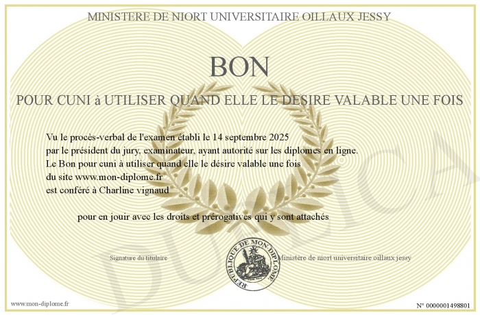 Envoyez par email votre Bon pour cuni à utiliser quand elle le désire valable une fois personalisé