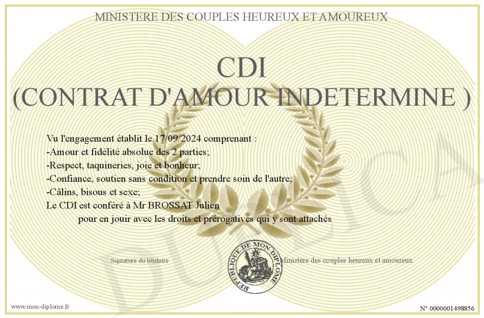 Envoyez par email votre CDI (Contrat d'Amour Indéterminé ) personalisé