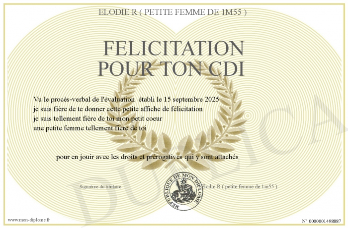 Envoyez par email votre félicitation pour ton CDI personalisé