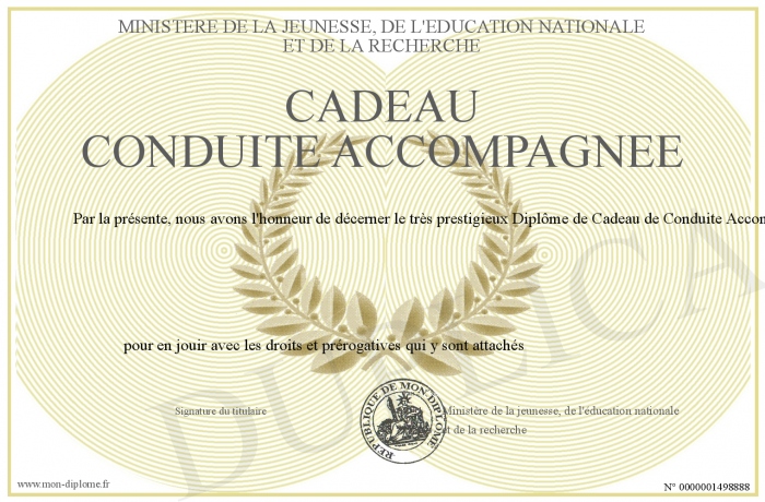 Envoyez par email votre Cadeau conduite accompagnee personalisé