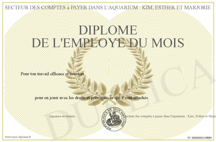Envoyez par email votre Diplôme de l'employé du mois personalisé
