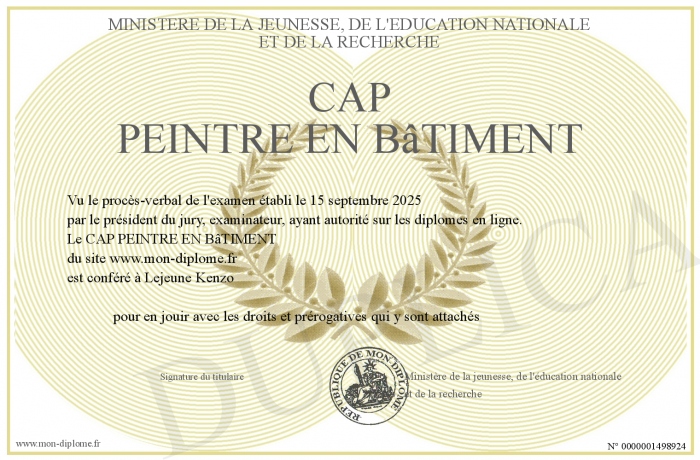 Envoyez par email votre CAP PEINTRE EN BâTIMENT personalisé