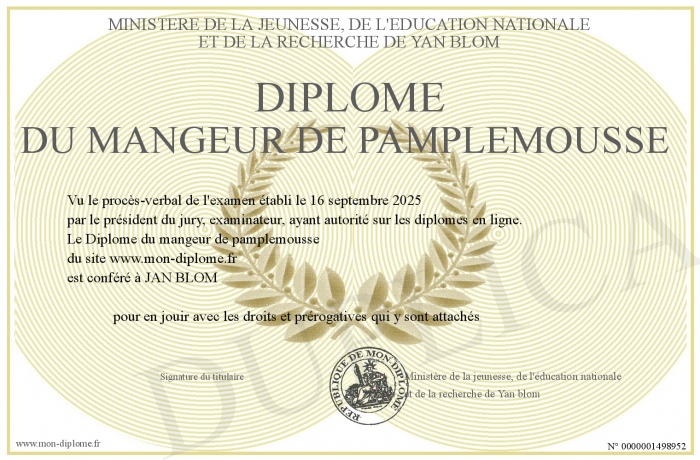 Envoyez par email votre Diplôme du mangeur de pamplemousse personalisé