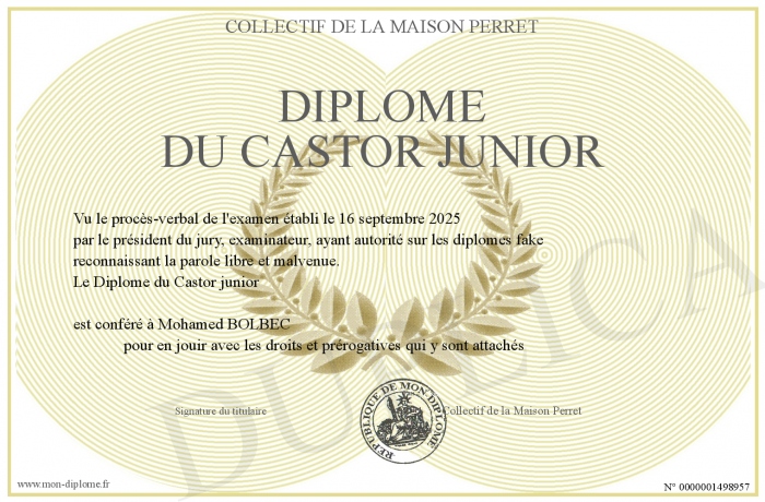 Envoyez par email votre Diplôme du Castor junior personalisé