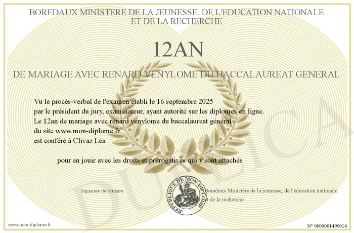 Envoyez par email votre 12an de mariage avec renard venylôme du baccalaureat général personalisé