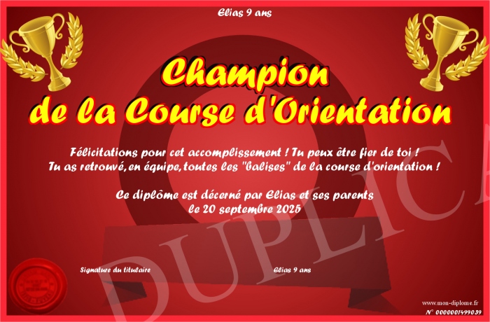 Envoyez par email votre Champion de la Course d'Orientation personalisé