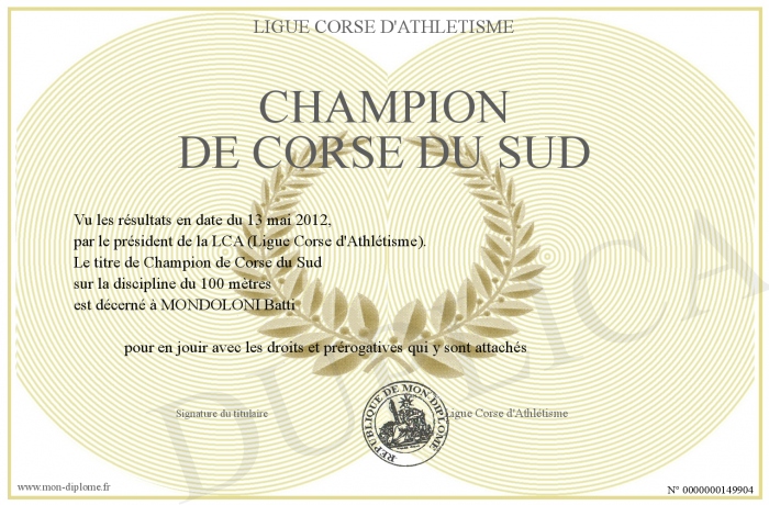 Envoyez par email votre Champion de Corse du Sud personalisé