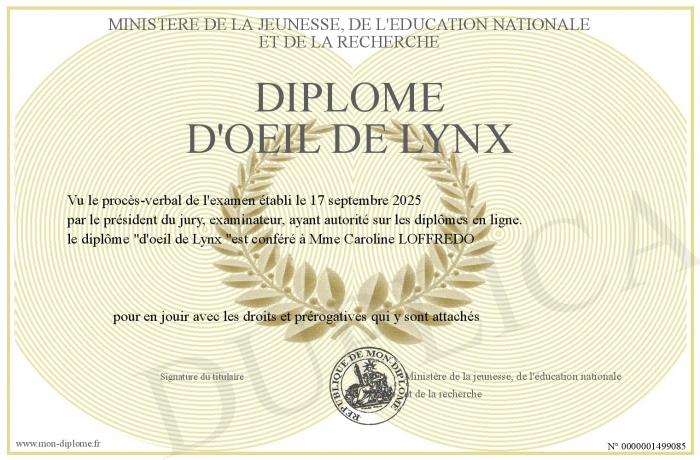 Envoyez par email votre Diplôme d'oeil de lynx personalisé
