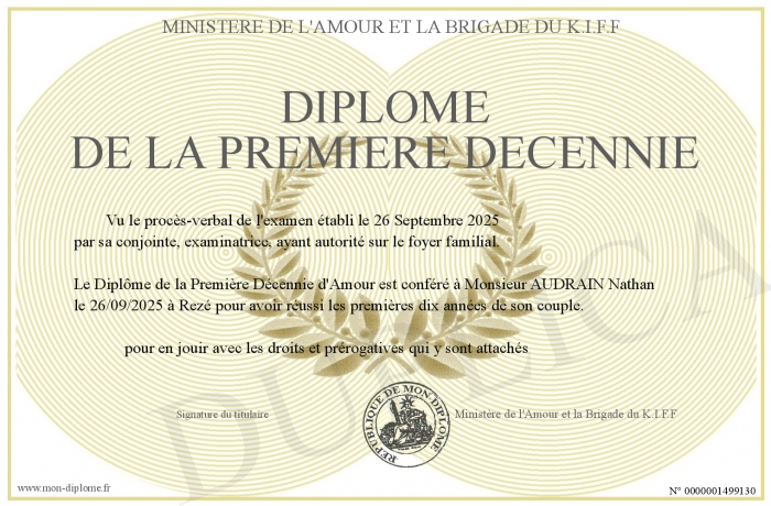 Envoyez par email votre Diplôme de la première décennie personalisé