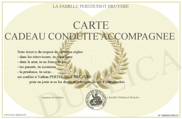 Envoyez par email votre Carte cadeau conduite accompagnée personalisé