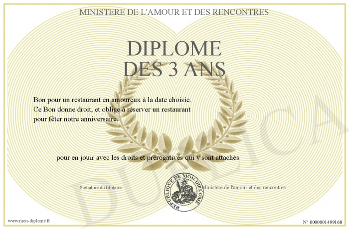 Envoyez par email votre Diplôme des 3 ans personalisé