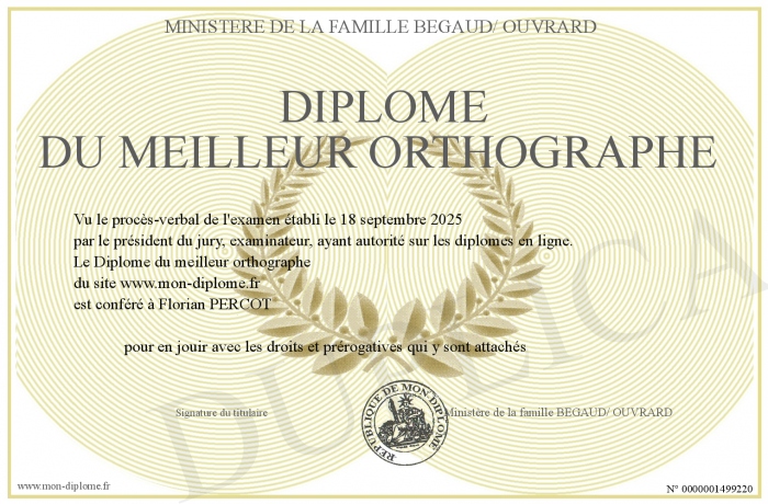 Envoyez par email votre Diplôme du meilleur orthographe personalisé