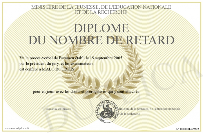 Envoyez par email votre Diplôme du nombre de retard personalisé