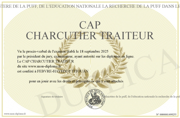 Envoyez par email votre CAP CHARCUTIER TRAITEUR personalisé