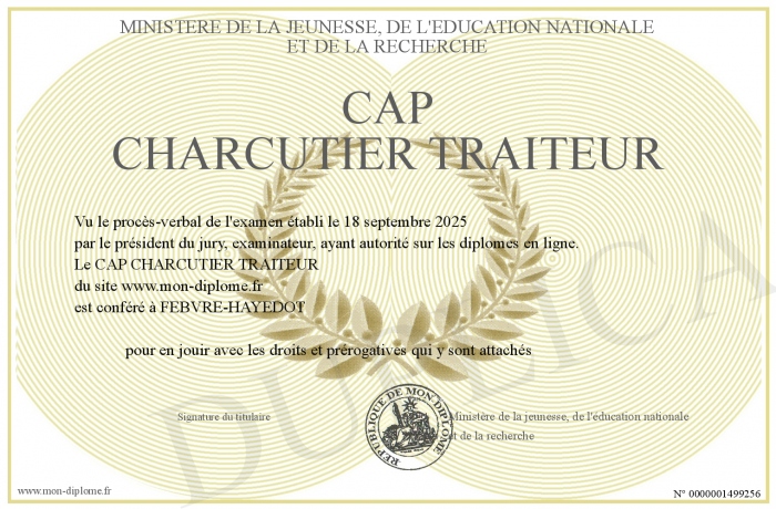 Envoyez par email votre CAP CHARCUTIER TRAITEUR personalisé