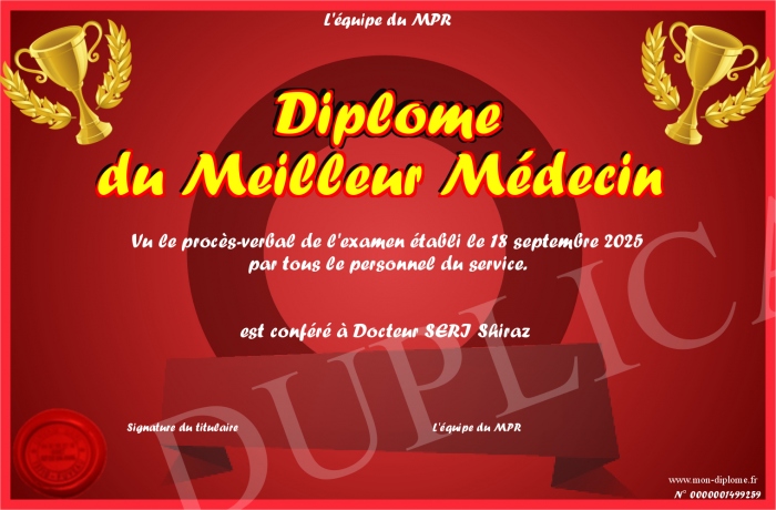 Envoyez par email votre Diplôme du Meilleur Médecin personalisé