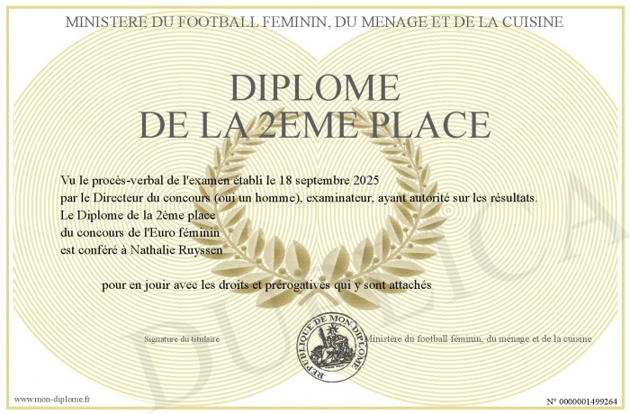 Envoyez par email votre Diplôme de la 2ème place personalisé