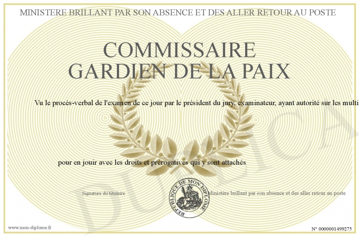 Envoyez par email votre COMMISSAIRE GARDIEN DE LA PAIX personalisé