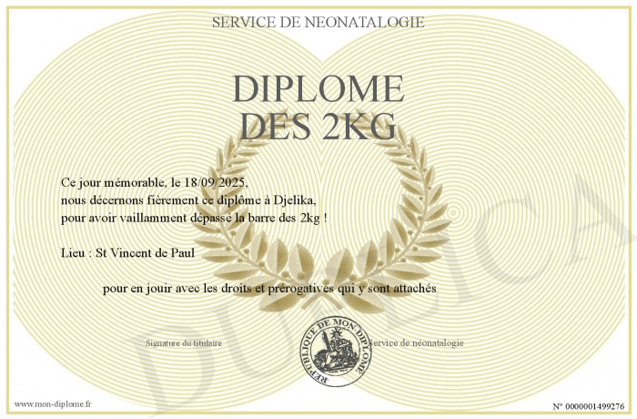 Envoyez par email votre Diplôme des 2kg personalisé