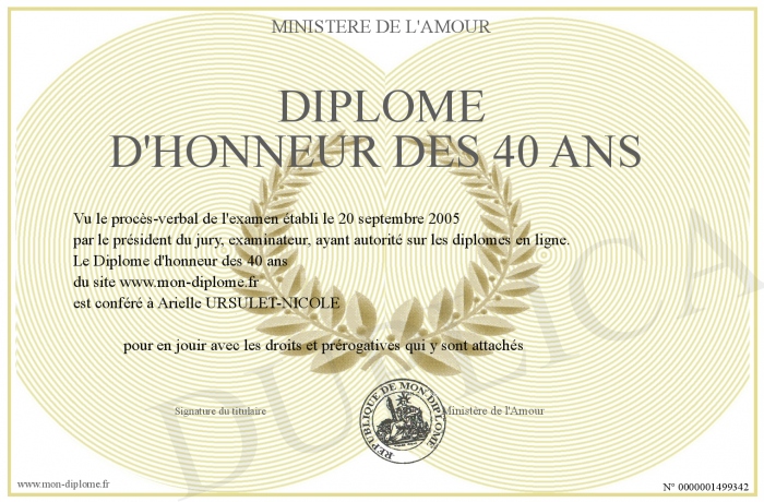 Envoyez par email votre Diplôme d'honneur des 40 ans personalisé