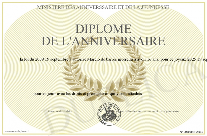 envoyé par le ministère des anniverssaire et de la jeunnesse !