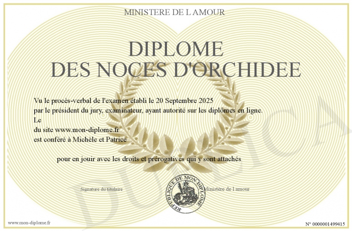 Envoyez par email votre diplôme des Noces d'orchidée personalisé