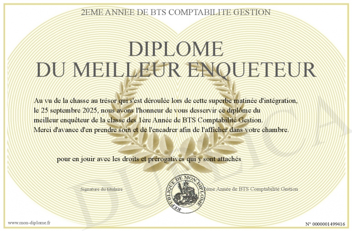 Envoyez par email votre Diplôme du meilleur enqueteur personalisé