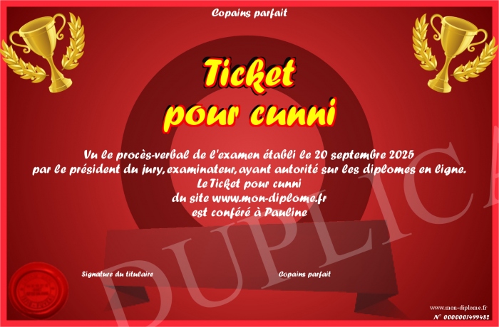 Envoyez par email votre Ticket pour cunni personalisé