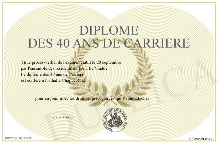 Envoyez par email votre Diplôme des 40 ans de Carrière personalisé