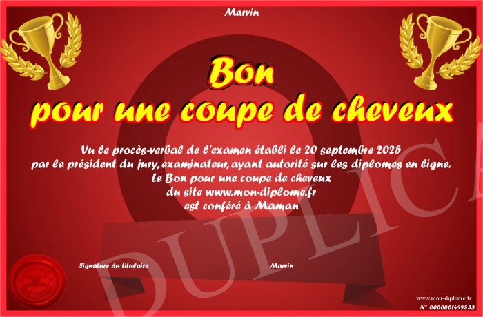 Envoyez par email votre Bon pour une coupe de cheveux personalisé