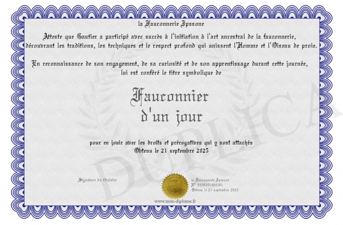 Envoyez par email votre Fauconnier d'un jour personalisé