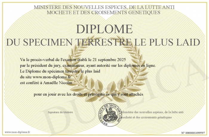 Envoyez par email votre Diplôme du spécimen terrestre le plus laid personalisé