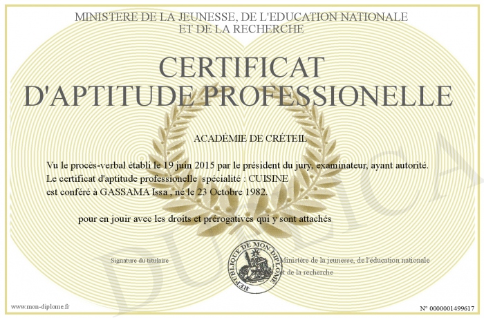 Envoyez par email votre certificat d'aptitude professionelle personalisé