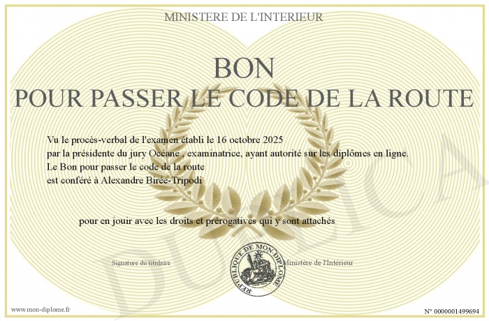 Envoyez par email votre Bon pour passer le code de la route personalisé